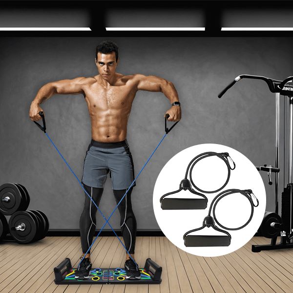 Ne samo za sklece! MUSCLEPLATE podpira različne vaje, kot so dvigi za triceps, stiskanje za ramena in več. Je celovita fitnes rešitev za doseganje celotne telesne moči.