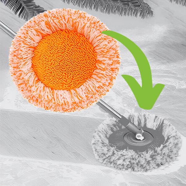 Okrogla glava tega čistilnega mopa omogoča 360-stopinjsko čiščenje.