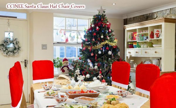 Rdeči klobuk stoli nazaj pokrovi so kot nalašč za uporabo v božični sezoni, dobre notranje dekoracije za dom, pisarno in učilnico, bo pustil svoje prijatelje, družino čudovit božični vtis.