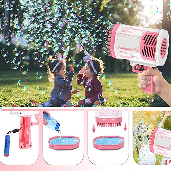 Povzdignite svoja srečanja z BUBBLEPUFF 69-luknjasto LED pištolo za milne mehurčke, zasnovano za ustvarjanje očarljivega toka mehurčkov, ki navdušuje tako otroke kot odrasle.