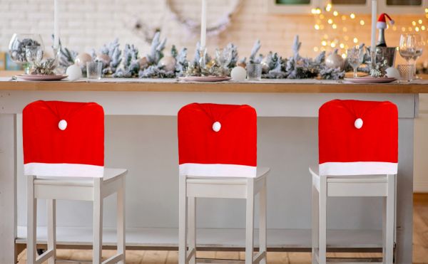 Te božične prevleke za stole imajo čudovit dizajn, ki spominja na Božičkove klobuke, in živahno rdečo barvo, ki jo na vrhu vsake prevleke krasi bela plišnata pumparica. Ta očarljivi dodatek daje vaši jedilnici očarljiv in prazničen pridih – resnično očarljiv in duhovit okrasek!
