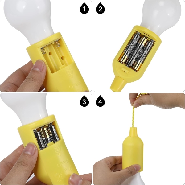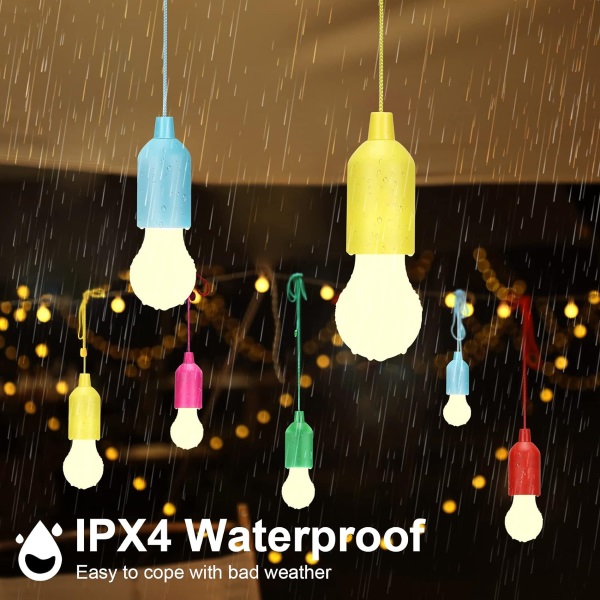 4 LED viseče luči na vrvici, namenjene za notranjo in zunanjo uporabo. Te luči delujejo na baterije in imajo priročno vlečno vrvico, priključeno na stikalo za luč. Te vrvne luči so idealne za osvetlitev in okrasitev prostorov, kot so omare, garaže, dvorišča, verande in stopnice, in so idealne za vse prostore, ki zahtevajo dodatno osvetlitev.