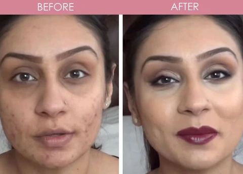 Deluje kot puder, ki v celoti prikrije pomanjkljivosti, vključno z gubami, lisami, aknami, povečanimi porami, brazgotinami, ki ostanejo po aknah in vsemi temnimi madeži.