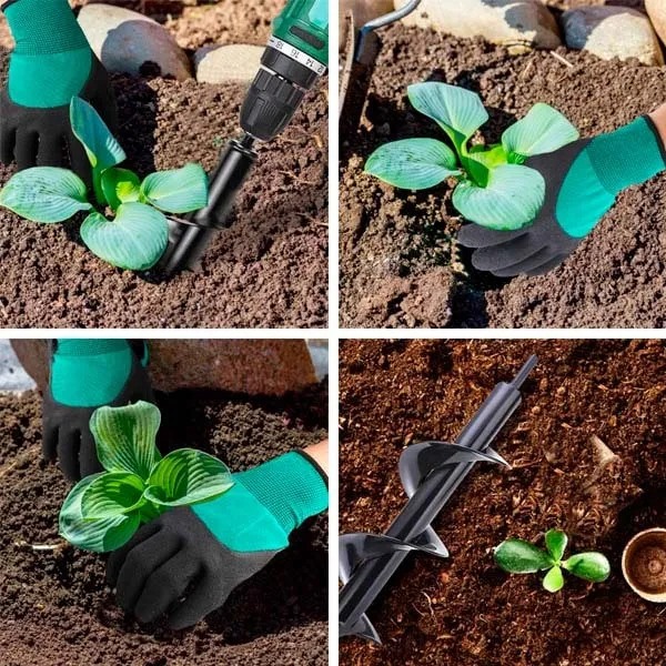 HOLEDRILL omogoča enostavno sajenje z natančnim vrtanjem lukenj v nekaj sekundah. Preprosto ga pritrdite na svoj vrtalnik in pustite, da opravi delo—brez večjega napora z lopatami ali ročnimi orodji.
