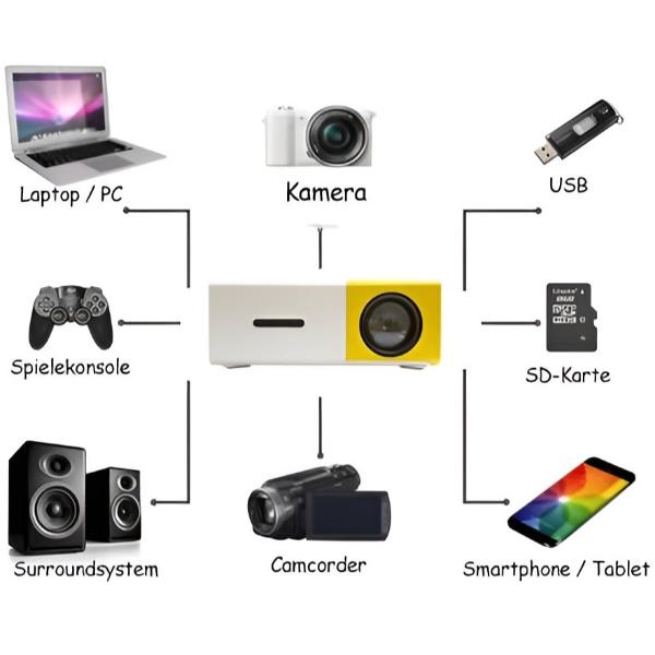 Z več izhodi, kot so USB, HDMI in AV, ta projektor zagotavlja zabavo, ne glede na to, katero napravo uporabljate.