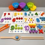 Barvite kroglice, teksture in pripomočki spodbujajo vid in dotik ter poglabljajo razumevanje zgodnje matematike.