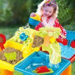 Komplet SANDLANDIA je izdelan iz trpežne plastike in je zasnovan tako, da je odporen na zunanje razmere, kar zagotavlja dolgotrajno zabavo in varno igro na vrtu ali na plaži.