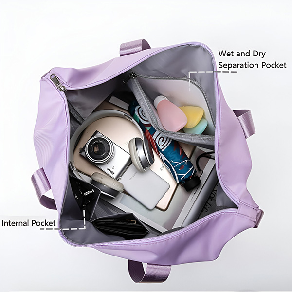 Ta torba ima razdelilnik za mokro in suho za priročno shranjevanje umazanih ali mokrih oblačil in brisač.