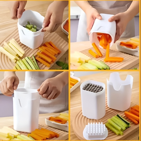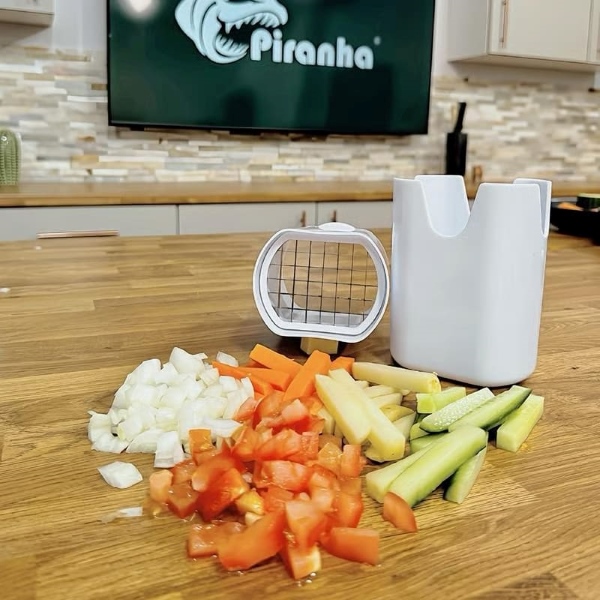 Kuhinjsko orodje CHOPZY ni namenjeno le za pomfrit; je vsestranski sekljalnik zelenjave, ki zlahka obdela različne sestavine, kot so korenje, kumare in čebula, ter olajša pripravo obrokov.