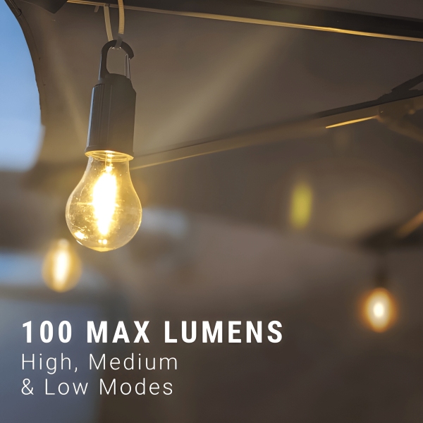 🌟 3 ravni svetlosti – mehak ambientalen sijaj za dolge poletne noči ali močna svetloba za večerje na prostem in pozne pogovore.